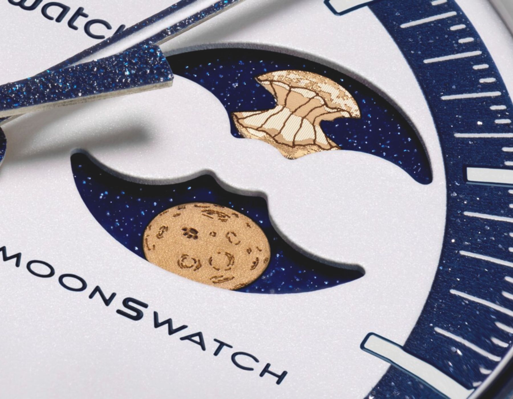 Swatch has released their newest collection, MISSION TO EARTHPHASE – MOONSHINE GOLD, inspired by the Beaver Moon with a cheeky lunar bite. The timepiece features the same stellar dial layout as its predecessors as well as being made from Swatch’s patented Bioceramic, a mix of ceramic and biosourced castor oil, MISSION TO EARTHPHASE – MOONSHINE GOLD stands out in a striking dark navy blue contrasting with the gold accents.