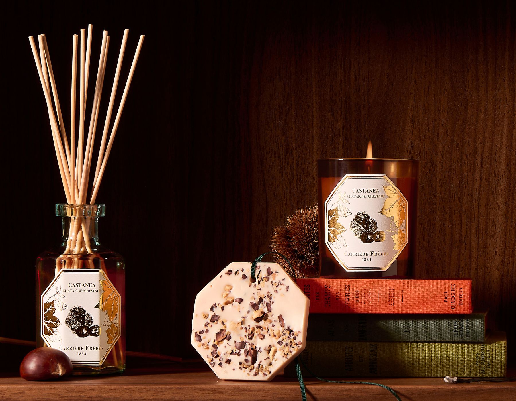 Carrière Frères has unveiled its new limited-edition Chestnut Collection, a quintessentially autumnal fragrance release that beautifully captures the spirit of the season. Crafted by perfumier Benjamin Belizon, the Chestnut Collection is a true ode to the autumn season, with smoky notes of cedar and sandalwood entwined with the mellow sweetness of dried fruits and the balsamic warmth of Siam benzoin.